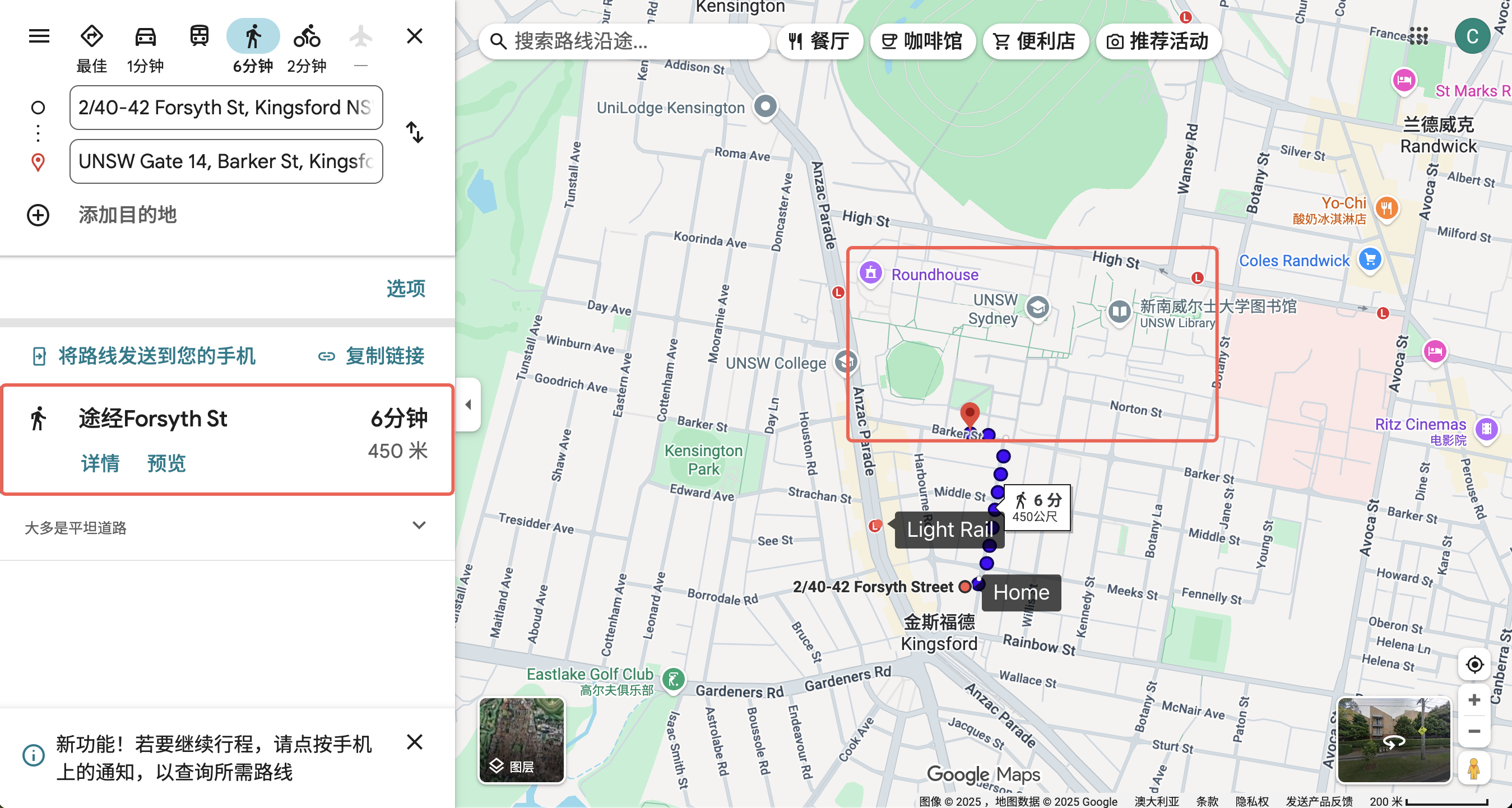 距离UNSW主校区步行6 min,附近有多家餐馆和亚超。